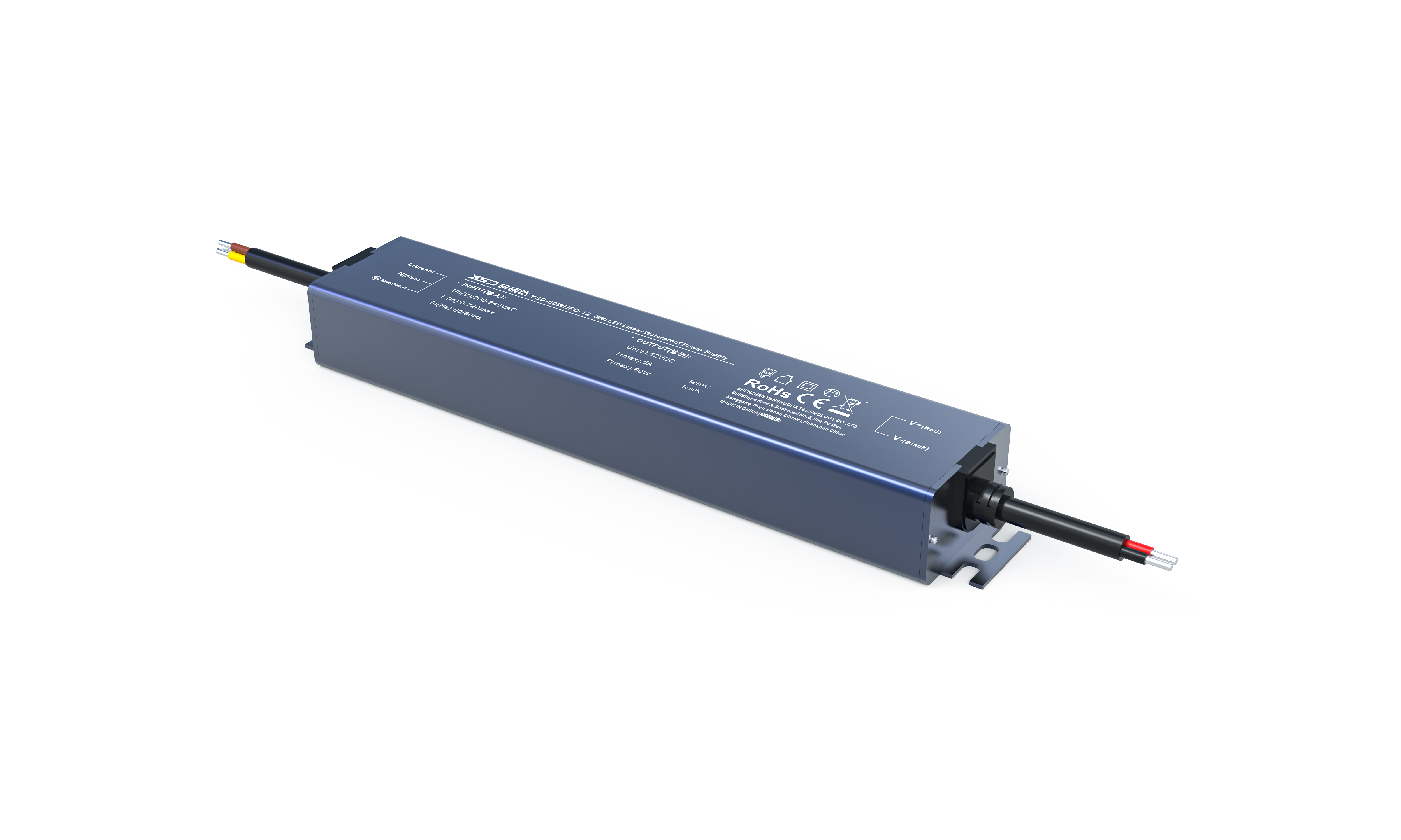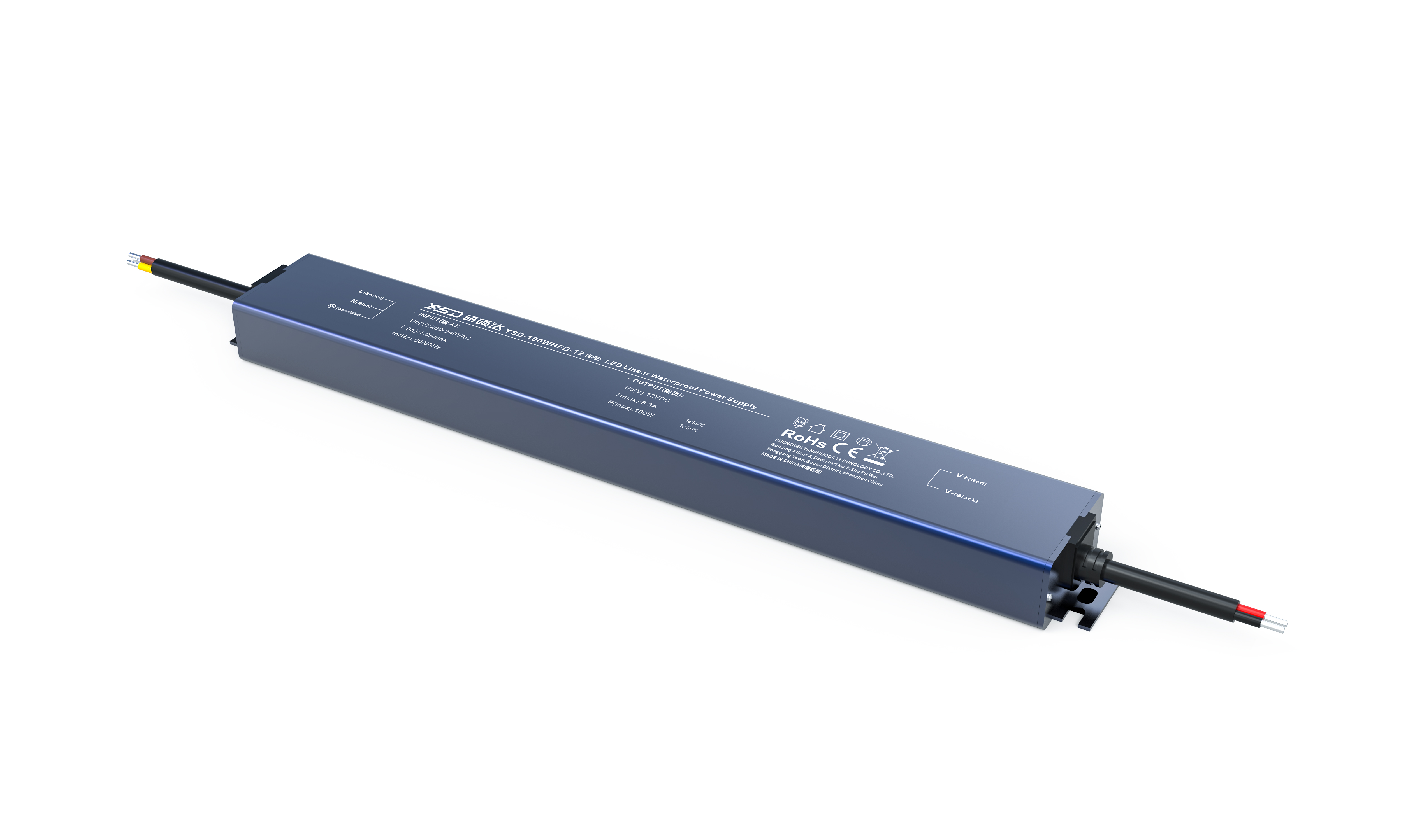 产品说明:长条型防水电源、恒压型、IP67防护、超薄紧凑、高效率、室内外通用、坚固耐用
